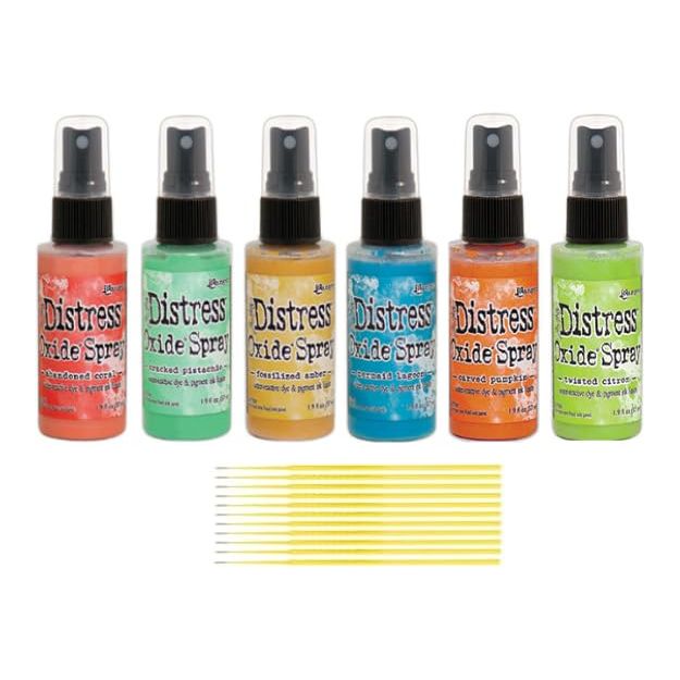 Trebbies Distress Oxide Spray Bundle - Mermaid Lagoon, Twisted Citron, Cracked Pistachio, Abandoned Coral, Carved Pumpkin, Fossiled Amber plus Detail Sticks
