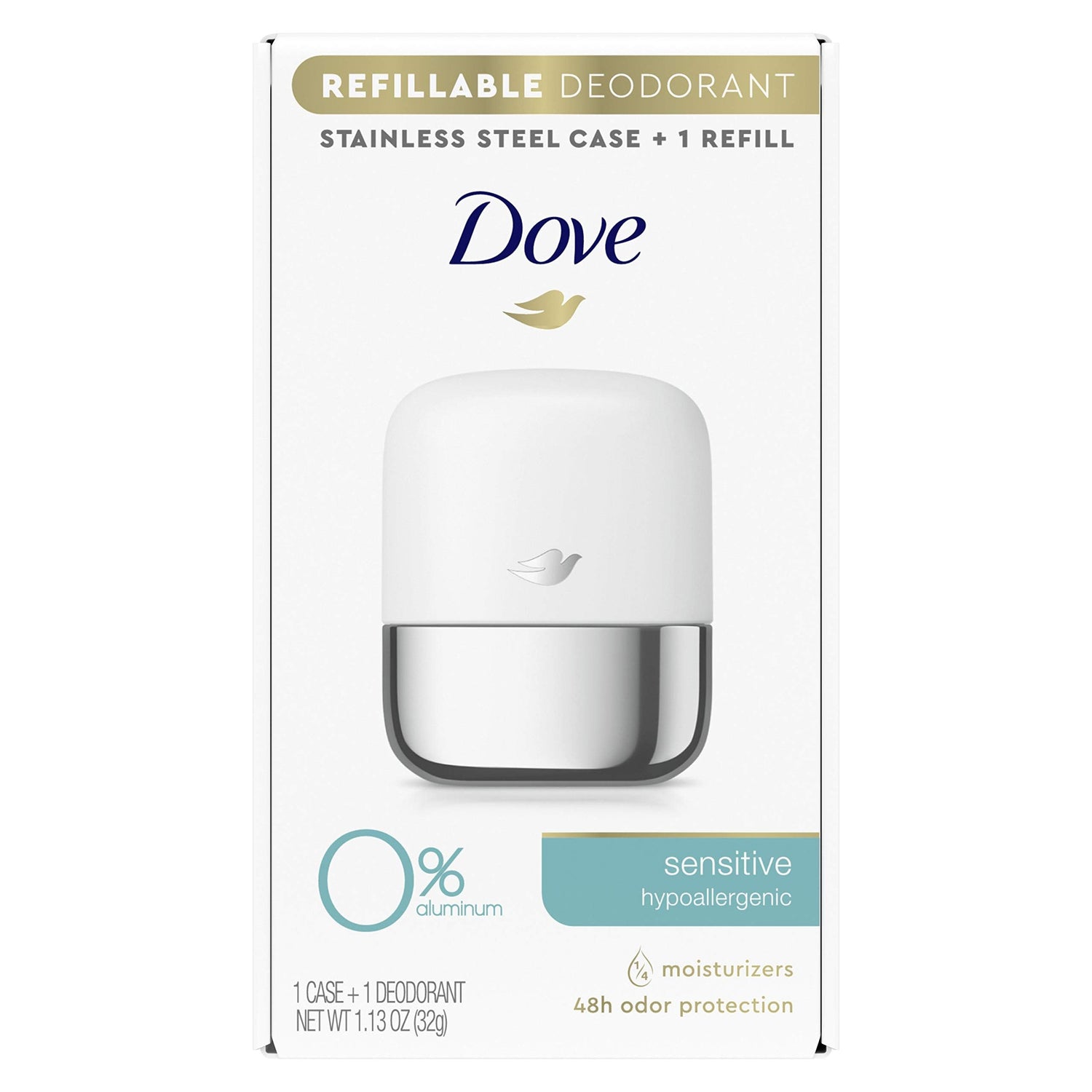 Dove Refillable Deodorant Starter Kit 0% Aluminum Sensitive Aluminum Free Deodorant 1.13 oz is backordered and will ship as soon as it is back in stock.